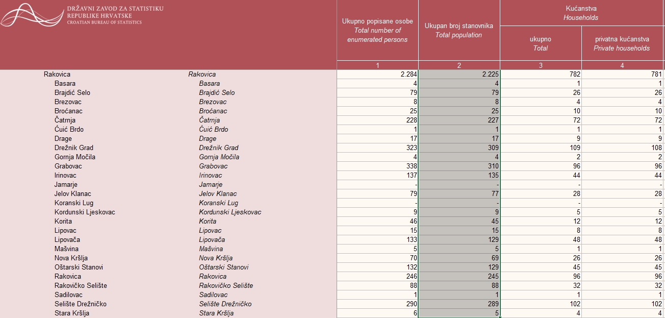 Rezultati popisa stanovništva 2021. za općinu Rakovica