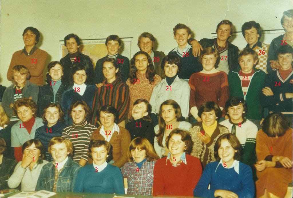 1. Jekica Rupčić, 2. Jelka Hodak, 3. Milka Špehar, 4. Marija Abrlić, 5. Mirjana Rendulić, 6. Zdenka Prebeg, 7. Milena Stojisavljević, 8. Milka Krneta, 9. Nedjeljka Jerković, 10. Ankica Špehar, 11. Ana Sabljak, 12. Ankica Krizmanić, 13. Jagoda Hodak, 14. Anđelka Ivančević, 15. Ljubica Buljanović, 16. Marjan Cindrić (Milkan), 17. Ana Brozinčević, 18. Marica Božičević, 19. Jadranka Batovanja, 20. Vinka Gaić, 21. Božica Štefanac, 22. Ruža Palian, 23. Nikica Hodak, 24. Lepko Pašić, 25. Nikola Mihić, 26. Božo Bjeljac, 27. Stjepan Krizmanić, 28. Zdravko Vrdoljak, 29. Mladen Požega, 30. Ivica Mlađan (Mlađo), 31. Mirko Kesić, 32. Joso Turkalj (Glavan)